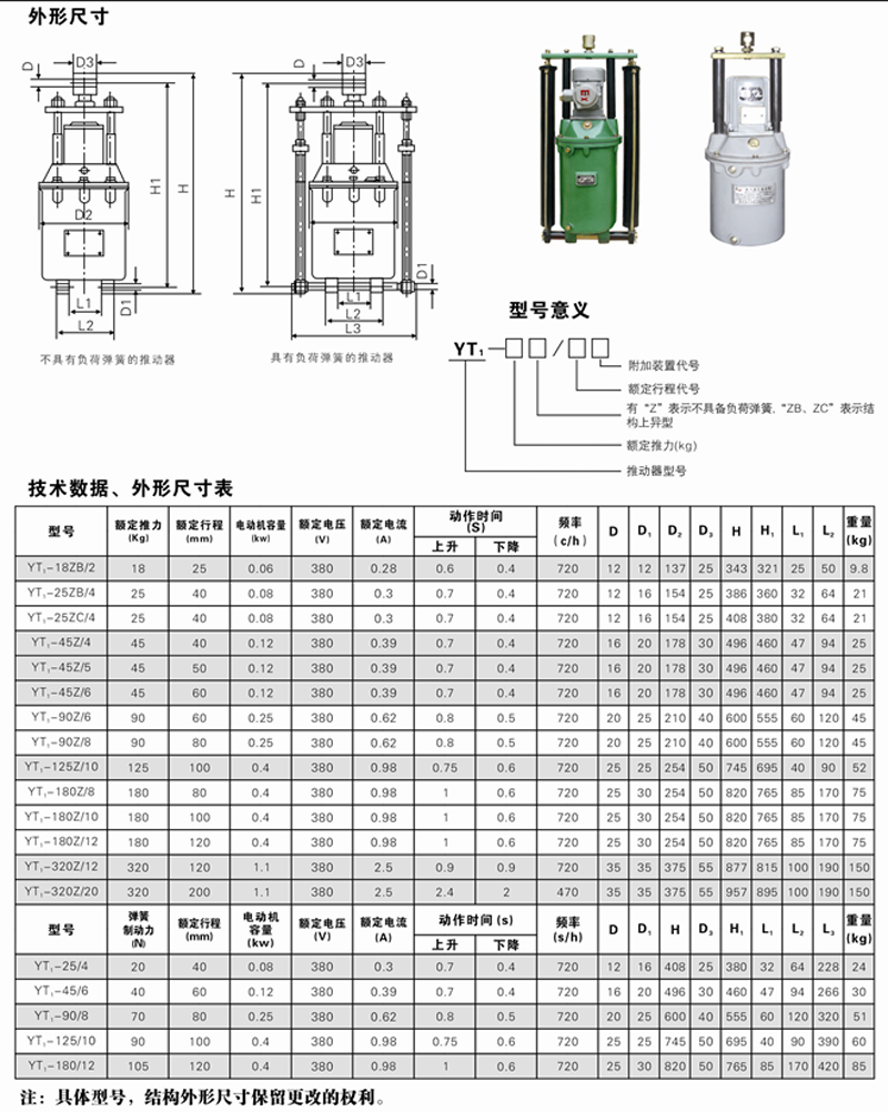 型號:YT1-18Z/2,YT1-25Z/4,YT1-45Z/6,YT1-45Z5,YT1-90Z/8,YT1-125Z/10,YT1-180Z/12 YT1-320Z/20