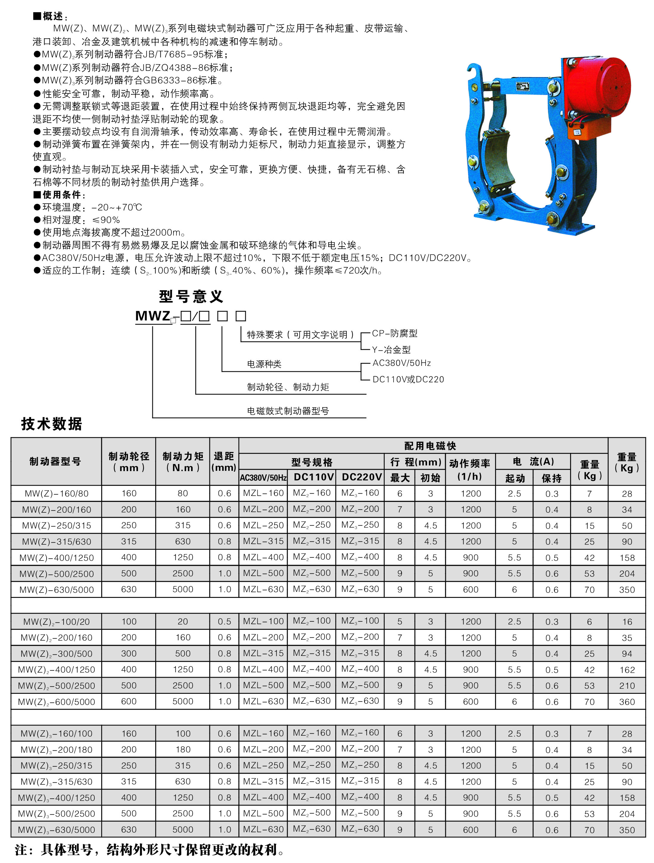 MW(Z).MW(Z)2,MW(Z)3系列電磁鼓式制動器