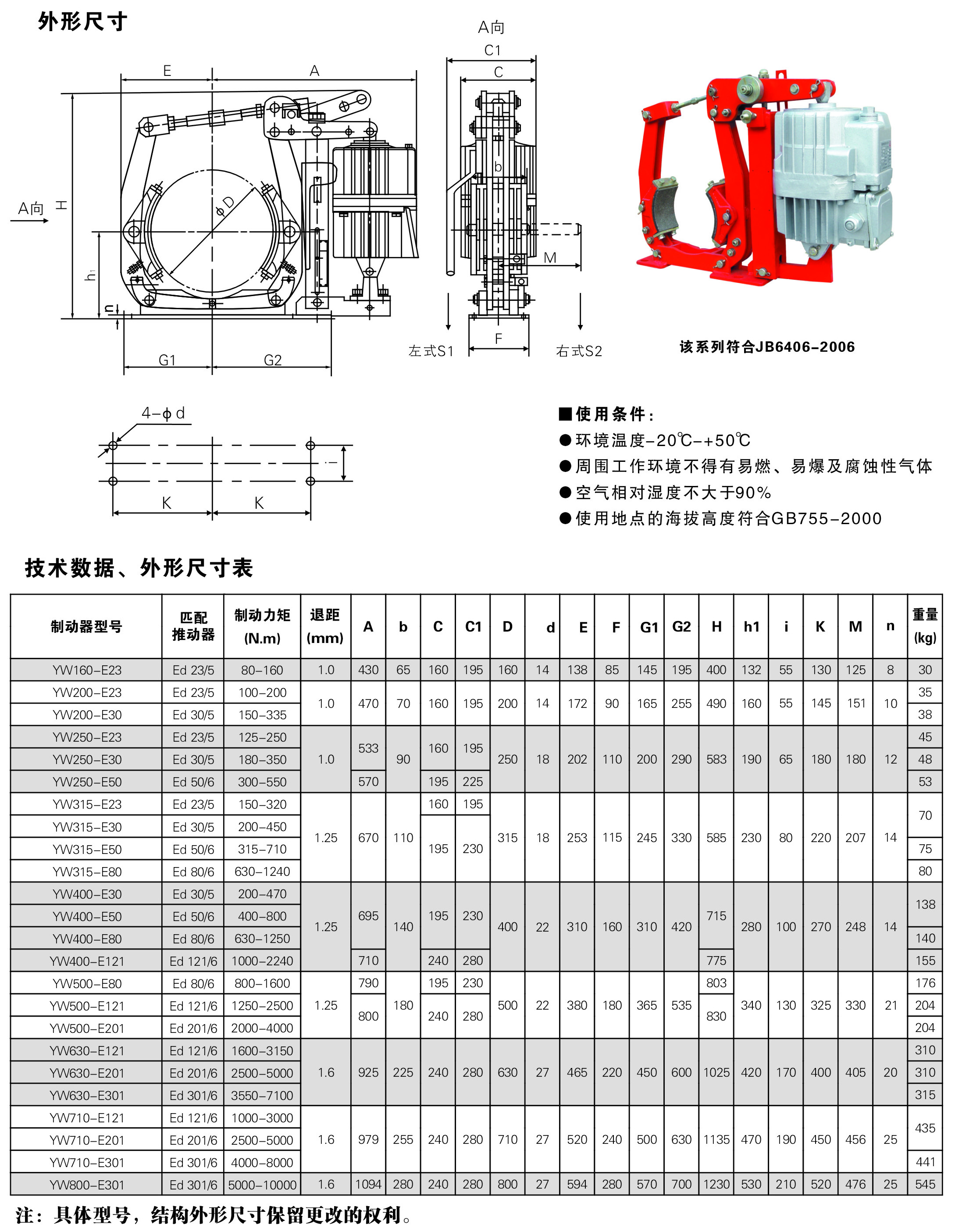 制動器安裝尺寸和制動力矩參數(shù):GB6333-86標準,技術(shù)要求符合JB/T6406-2006標準。